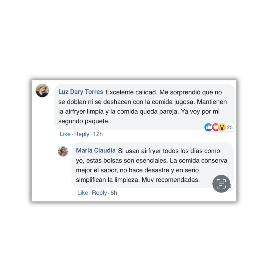 Es de esos productos que uno dice “¿cómo no lo compré antes?”. Cocino pollo, pastelitos y nada se pega. La freidora queda limpia como si no la hubiera usado, me encanta. 💪
