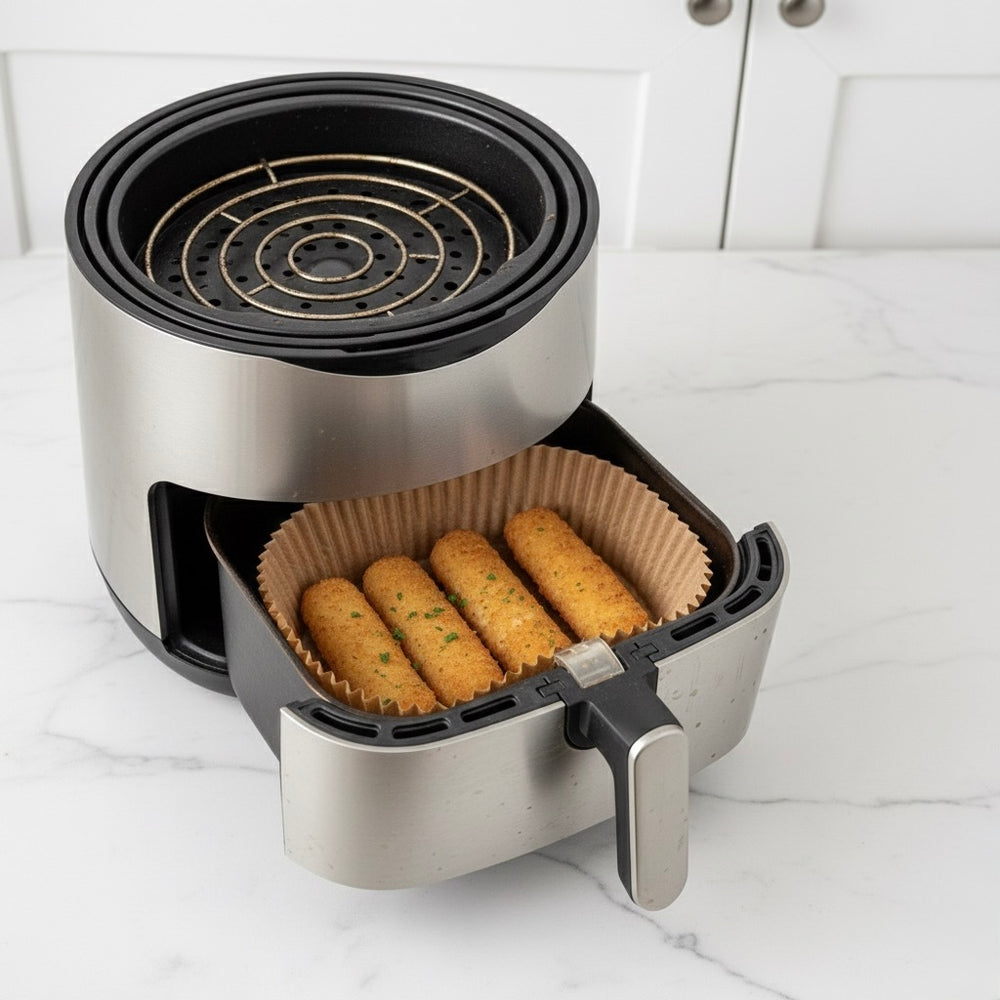 PACK DE 100 BANDEJAS DE PAPEL PARA AIRFRYER | CUBRIA™